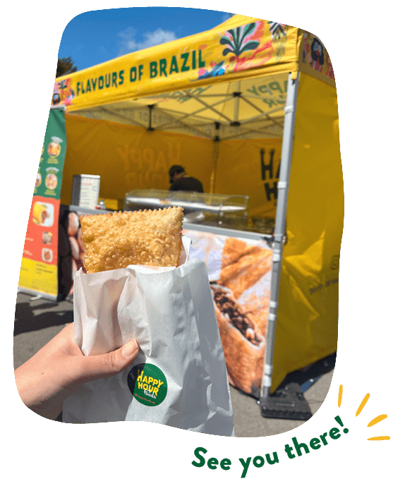 We love connecting with our community! You’ll find us at some of Dublin’s most popular farmers’ markets, where you can try our full range of freshly fried snacks. Don’t miss our Pastel de Feira, a traditional Brazilian street food pastry filled with your favourite flavours.